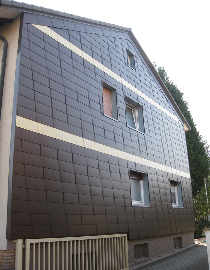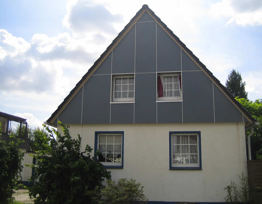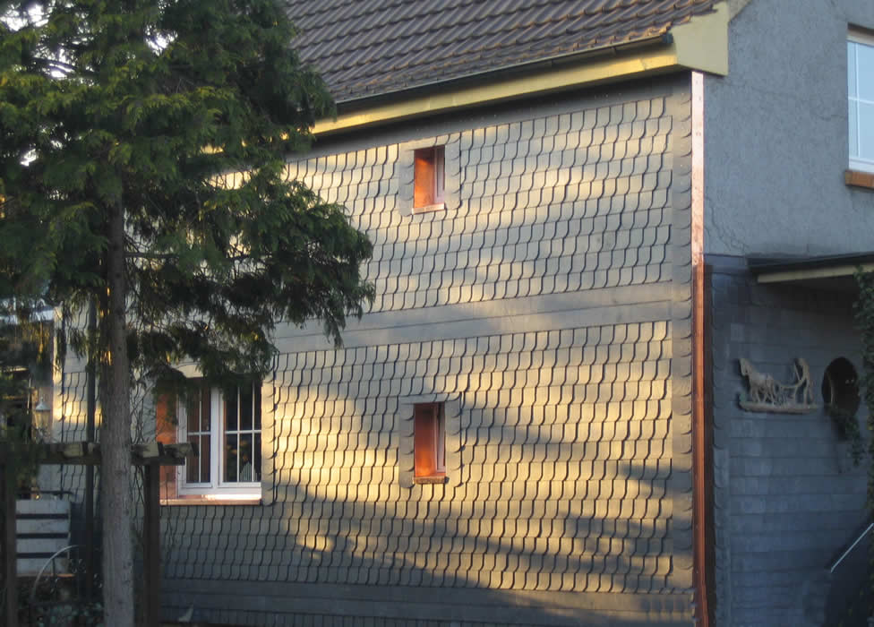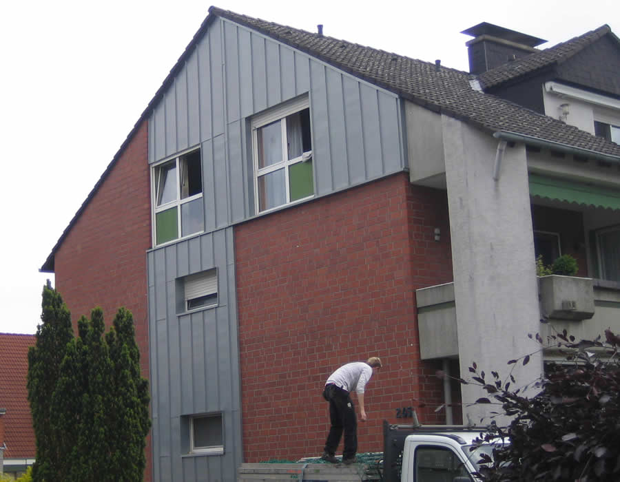 ![]() Wärmeverluste lassen sich auch an der Fassade Ihres Hauses durch eine optimale Fassadenverkleidung, z.B. mit Schiefer und Stehfalz vermeiden. Unschöne Giebel oder Mauerwände erhalten durch eine wirkungsvolle Wärmedämmung und Verkleidung ein ansprechendes Erscheinungsbild. © Niedieker Bedachungen, August-Schüttken-Weg 7, 59073 Hamm ![]() Fotogalerie ![]() ![]() *Architekt: Jonas Puschmann www.puschmann-architektur.de - Fotograf: Simon Puschmann www.simonpuschmann.com Leistungen > Fassaden ![]() ![]() Hier wurden die Giebelfassaden eines Scheunengebäudes mit Lärche-Holz erneuert. |